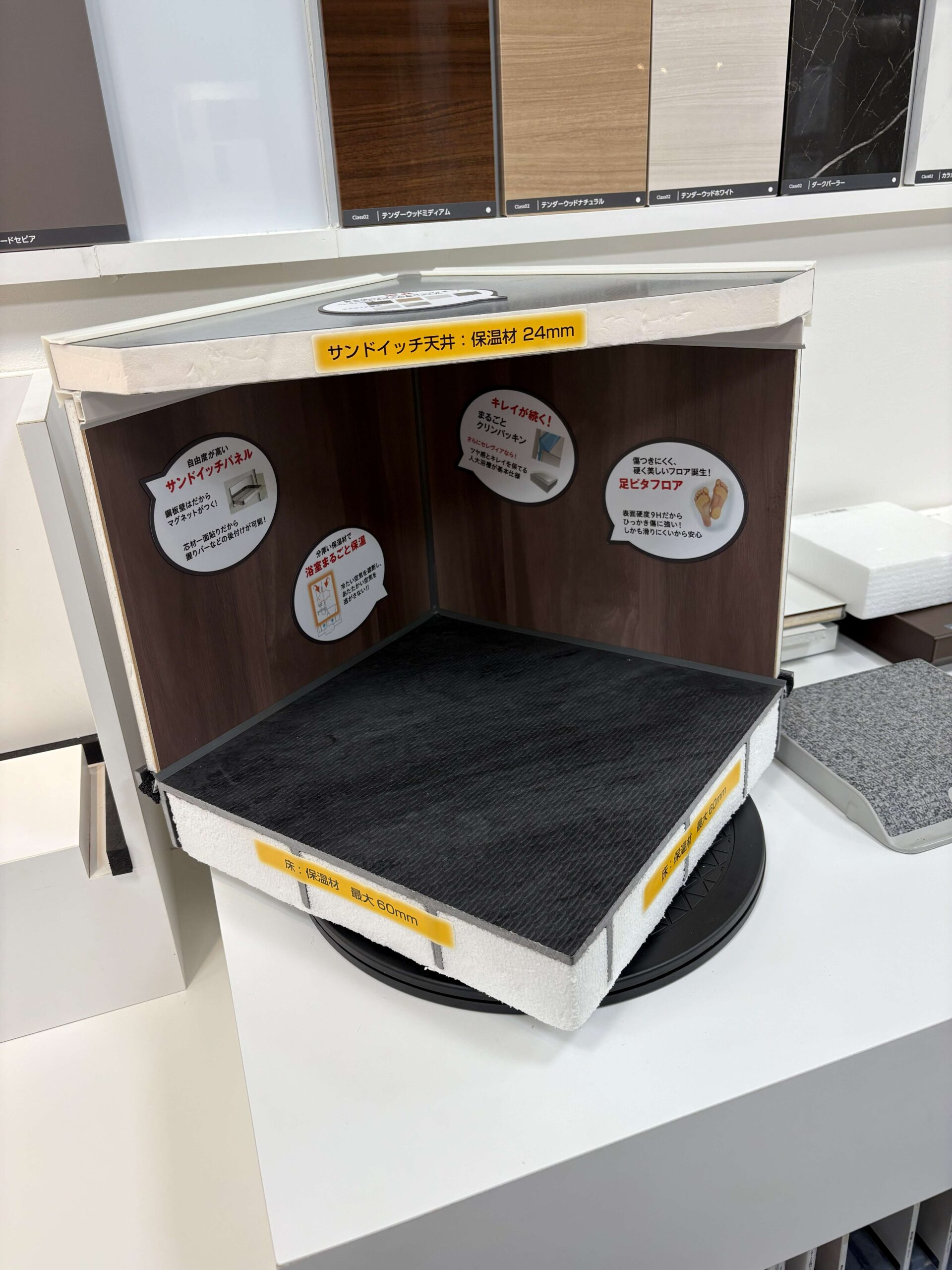 天井・床・壁すべてに厚い保温材が搭載されています。