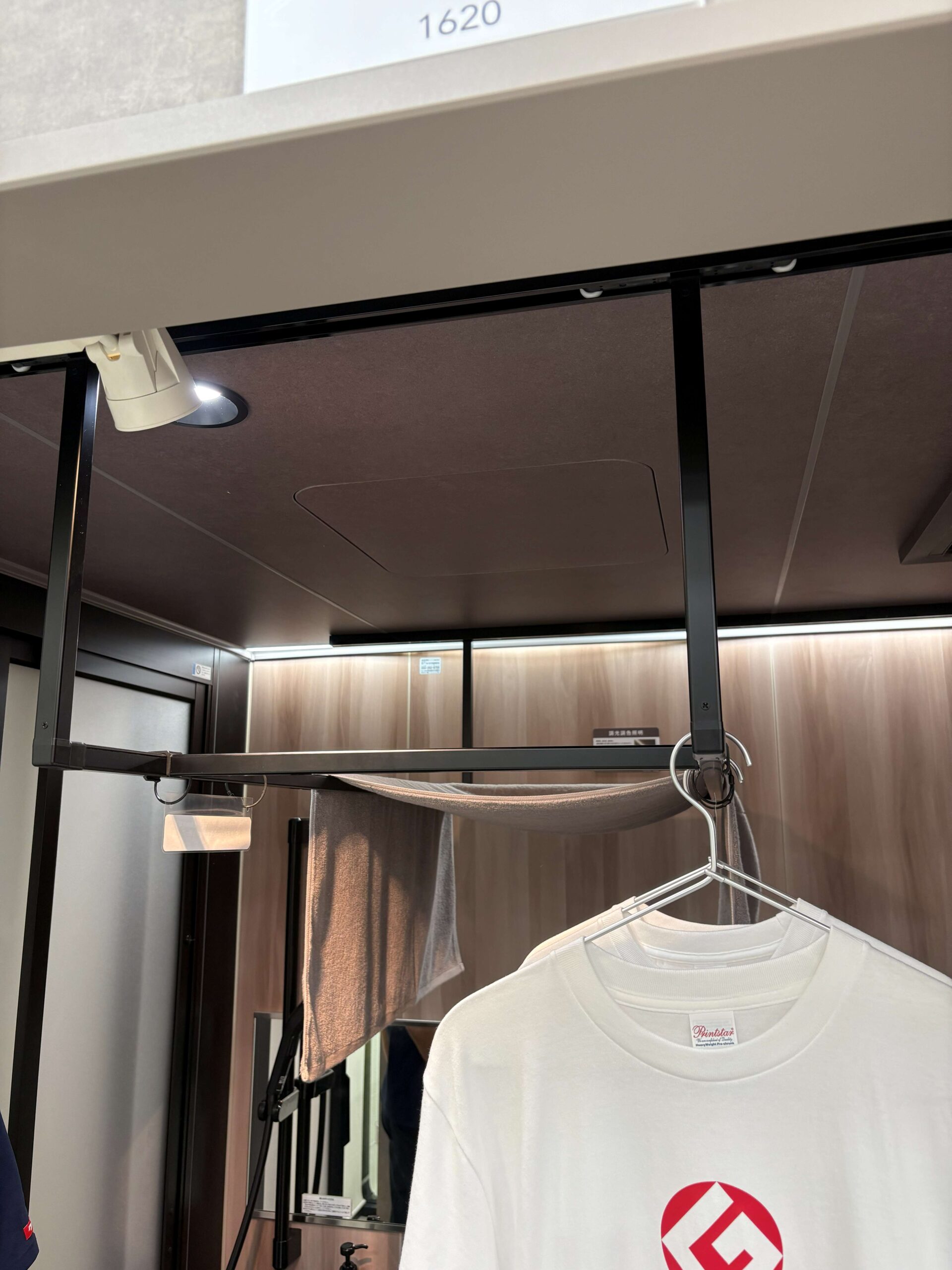 このランドリーパイプは天井のレールにつられているのでスライドします。